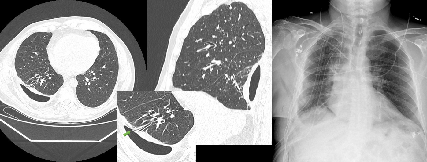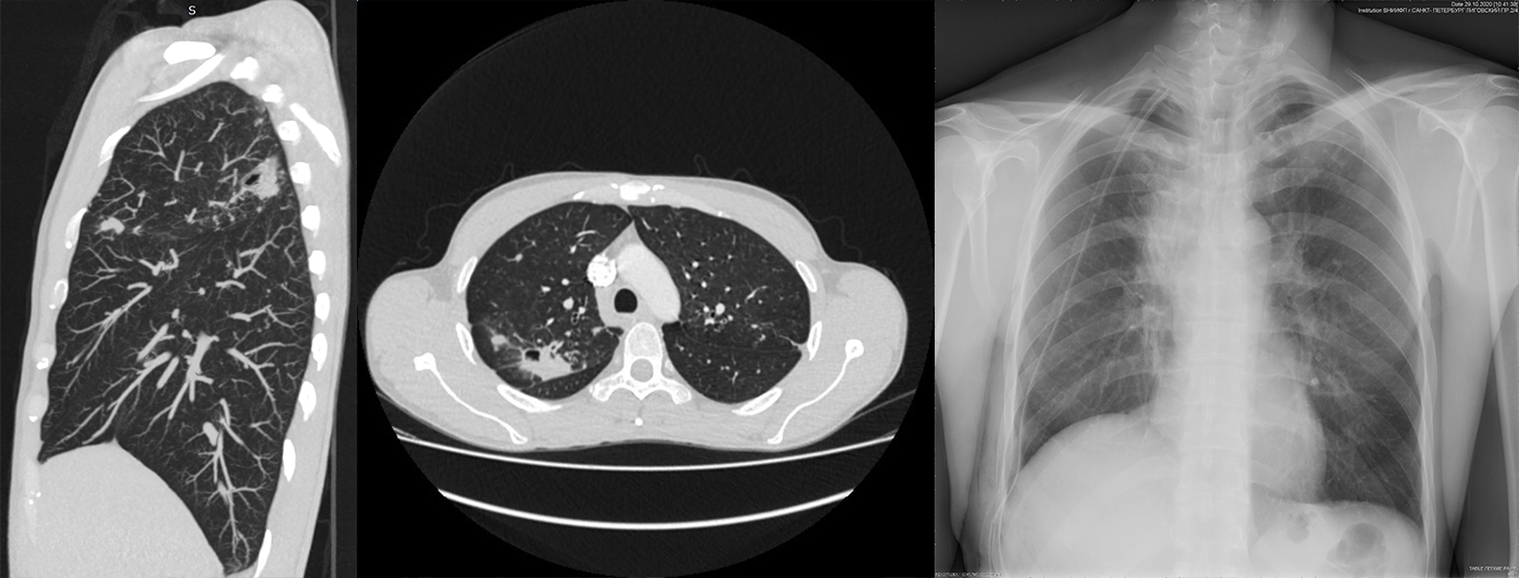Вторая демонстрация: пациент с исходно инфильтративным туберкулезом верхней доли правого легкого, МБТ (+), ЛЧ МБТ, осложненным правосторонним специфическим плевритом. На фоне лечения с февраля 2020 в ПТД по месту жительства противотуберкулезными препаратами I ряда проводились многократные пункции плевральной полости без существенной положительной динамики.
